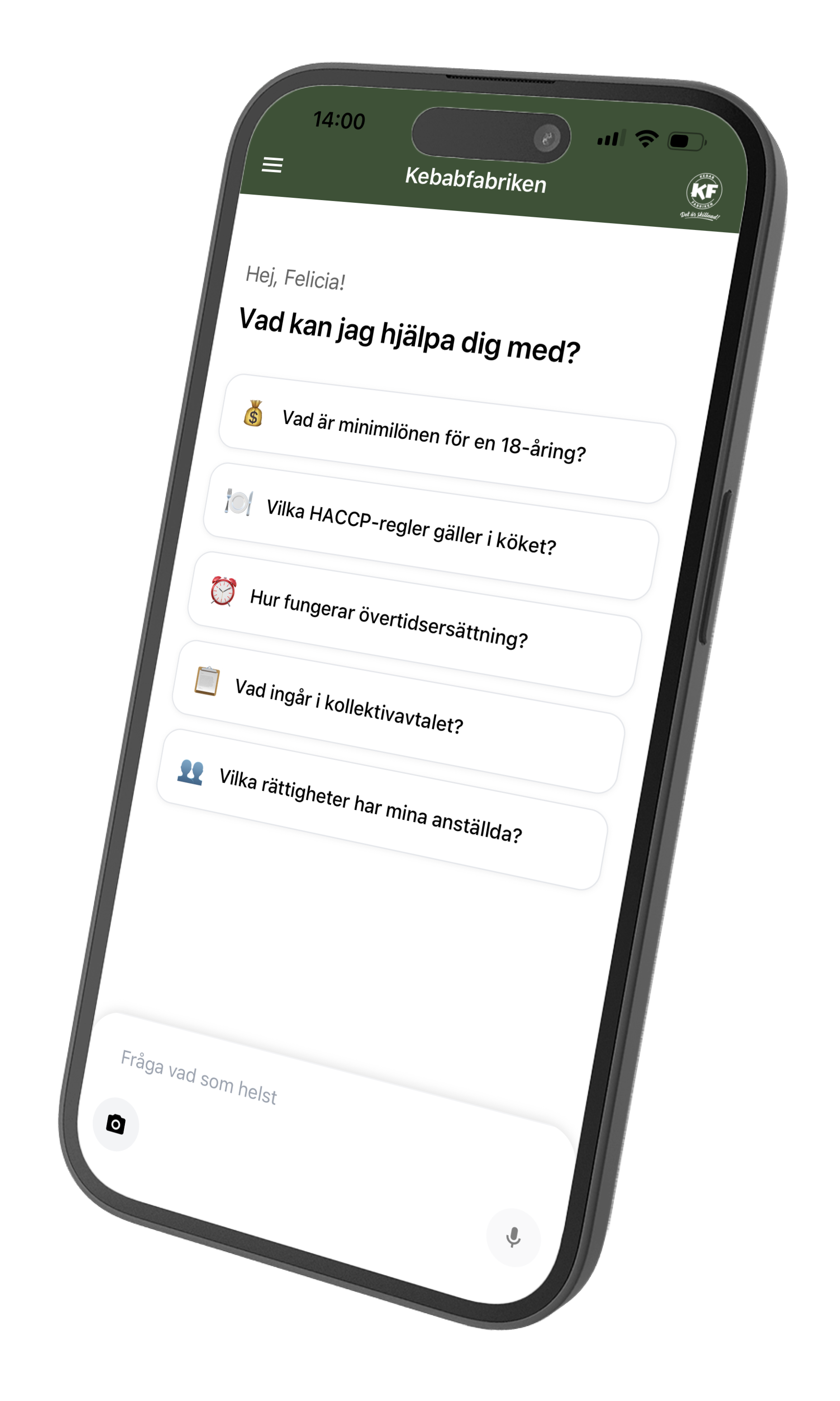 "Milo ger mig snabba svar mitt i servicen. Perfekt när jag behöver kolla arbetstider eller hygienregler – slipper leta i pärmar eller ringa chefen!"